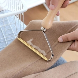 Eleganten in učinkovit pomočnik za vsakodnevno nego tekstila. Odstrani mucke, dlake in ohlapna vlakna z različnih materialov ter jim povrne čist in urejen videz. Zahvaljujoč ergonomskemu lesenemu ročaju udobno leži v roki in se natančno vodi v eni smeri po površini tkanine.