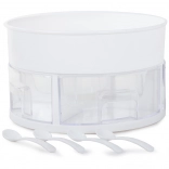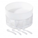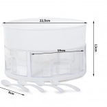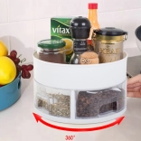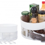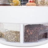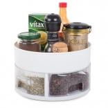 Praktičen vrtljiv kuhinjski organizator za pregledno shranjevanje začimb, kave, čaja ali drobnarij. Zahvaljujoč 360° vrtenju ponuja hiter dostop do vseh predalov, prihrani prostor v omarici in na pultu, a zaradi prozornih predalčkov imate vedno pregled nad vsebino. Priložene so 4 žličke za udobno doziranje.