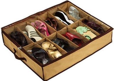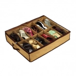 Lahka konstrukcija brez utrditve je varčna s prostorom, ročaji pa olajšajo prenašanje. Organizator ima 12 samostojnih pregrad za pare obutve, uporabite pa ga lahko tudi za igrače, pasove, nogavice ali spodnje perilo. Nežna bež barva z rjavim robom se poda v vsak interier.