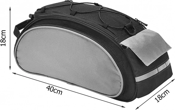 Uživajte v kolesarskih izletih s to praktično kolesarsko torbo, ki se enostavno pritrdi na nosilec. Ponuja glavni predal z notranjim žepom in dva stranska žepa z zadrgo za še več shranjevalne zmogljivosti.