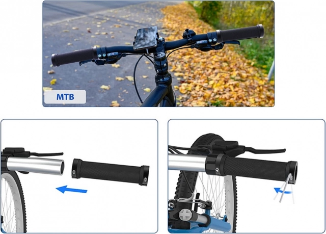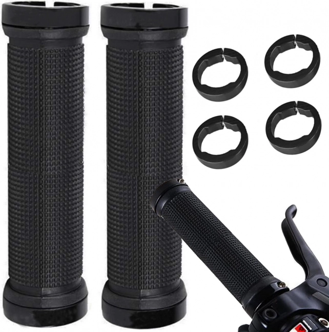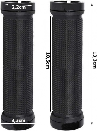Gumijasti ročaji za kolo so narejeni iz kakovostne nedrseče gume, ki zagotavlja mehkobo in blaži udarce. Kovinske končnice z vijaki zagotavljajo trdno pritrditev in preprečujejo možnost zdrsa gripov med vožnjo.