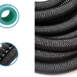Cev je izdelana iz visokokakovostnega poliestrskega traku, dvoslojnega lateksa in ABS plastike, kar jo naredi odporno na vremenske pogoje in visok vodni tlak. Je enostavna za shranjevanje zaradi svoje zložljive zasnove, ki prihrani prostor.