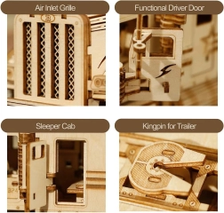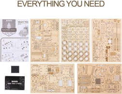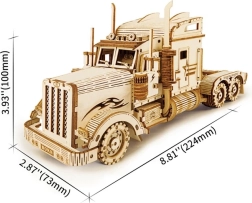 Ta detajliran in dodelan model tovornjaka je odličen primer natančne obrtne izdelave. Izdelan iz laserjem izrezanih delov iz 2 mm lipove vezane plošče, ki se enostavno iztiskajo iz podlage. Namenjen je razvijanju vašega tehničnega mišljenja, domišljije in fine motorike.