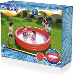 Lahek in trpežen otroški napihljiv bazen BESTWAY s premerom 183 cm ponuja otrokom veliko poletne zabave na vrtu. Zahvaljujoč trem komoram in varnostnim ventilom je stabilen in enostaven za vzdrževanje. Priložena je tudi popravna zaplata za hitro vzdrževanje, trpežen vinil pa zagotavlja dolgo življenjsko dobo.