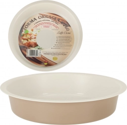 Ta okrogla pekač za peko z gladkimi stranicami in dnom je odlična izbira za vaše kuhinjske potrebe. Namenjena je za uporabo v plinskih in električnih pečicah, vendar ni primerna za pomivalni stroj. Pekač dopolnjuje sodobni dizajn v barvi kave z mlekom.