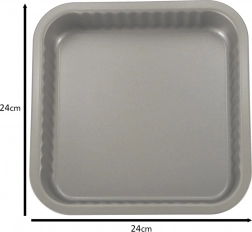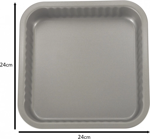 Neprijemajoč pekač z merami 24x24 cm je primeren za plinske in električne pečice. Izdelan je iz kakovostnega nizkoogljičnega jekla s protioprimno prevleko, ki zagotavlja, da se jedi zlahka sprostijo iz modela. Primeren za pripravo pit, pic in narastkov.