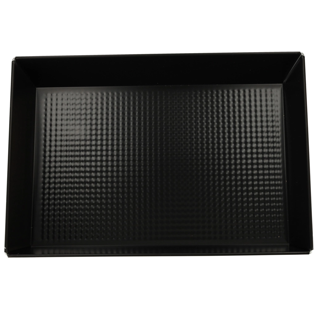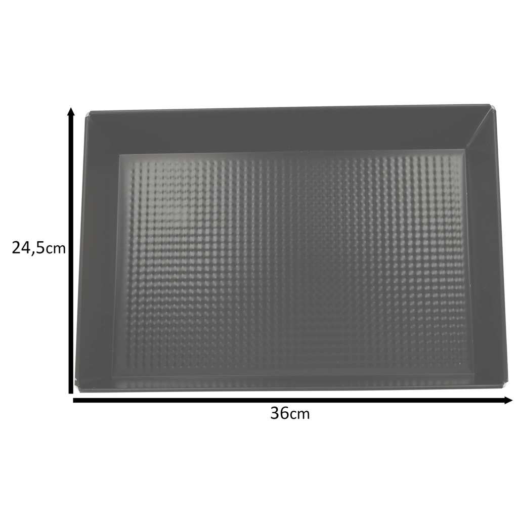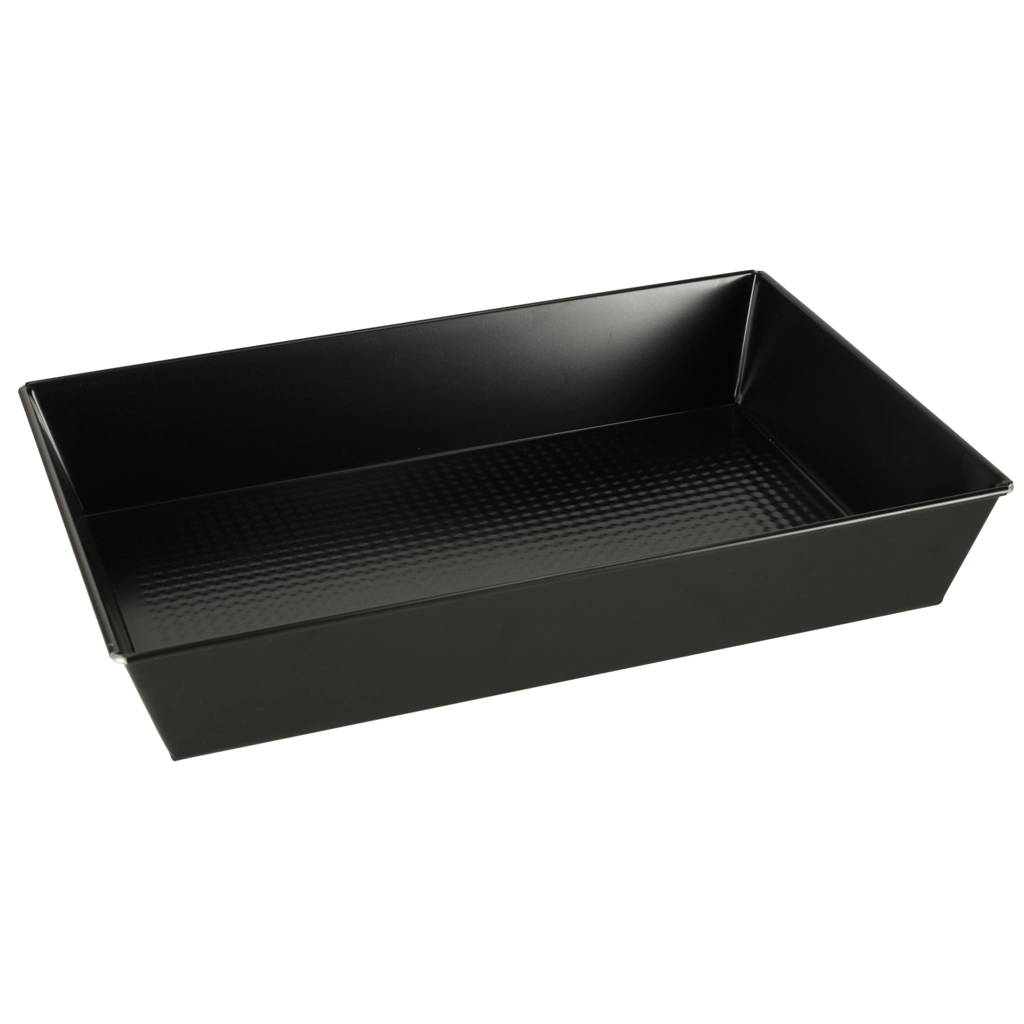 Praktičen črn pekač iz nizkoglejičnega jekla iz zlitine z nelepljivo “non‑stick” plastjo je zanesljiva izbira za vsakodnevno peko. Teksturirano dno izboljša kroženje toplote in omejuje prijemanje, zato se pecivo in meso enakomerno spečeta in ju je mogoče zlahka odstraniti iz oblike.