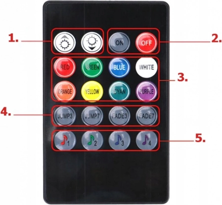 Daljinski upravljalnik za spremembo barve, svetlosti in načinov, hitro vklop/izklop neposredno na vtiču za vžigalnik. Sistem si zapomni zadnjo nastavitev.