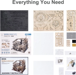 ROKR Marmorno Nočno Mesto je osupljiv 3D sestavljiv model kroglične piste, ki združuje zabavo in izobraževanje. Ta model je sestavljen iz 294 natančno izrezanih kosov, ki tvorijo zapleteno pot s številnimi ovirami in mehaniko, ki se poganja ročno z obračanjem kljuke. Del paketa je popoln priročnik, ki vas vodi skozi postopek sestavljanja.