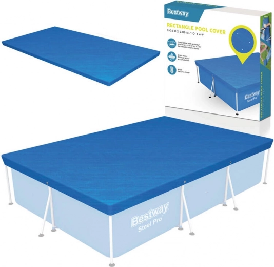 Pokrivalo je oblikovano tako, da zaščiti vaš pravokotni bazen z okvirjem dimenzij 300 x 201 cm. Posebne odtočne luknje na pokrivalu preprečujejo nabiranje vode. S integriranimi trakovi enostavno in varno pritrdite pokrivalo na konstrukcijo bazena.