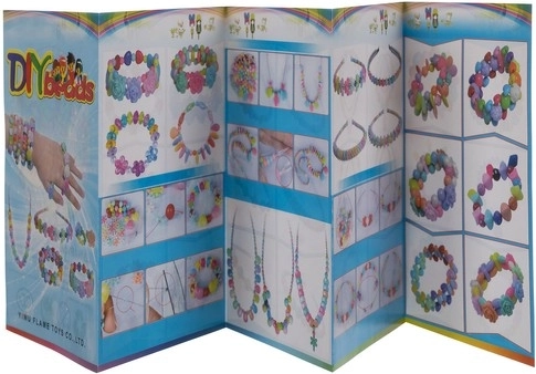 Pisana brošura z navodili za izdelavo ogrlic in zapestnic, ki otrokom pokaže različne vzorce.