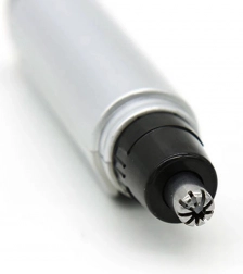 Naprava nudi varen oprijem za natančno manevriranje pri prirezovanju dlačic v nosu in ušesih.