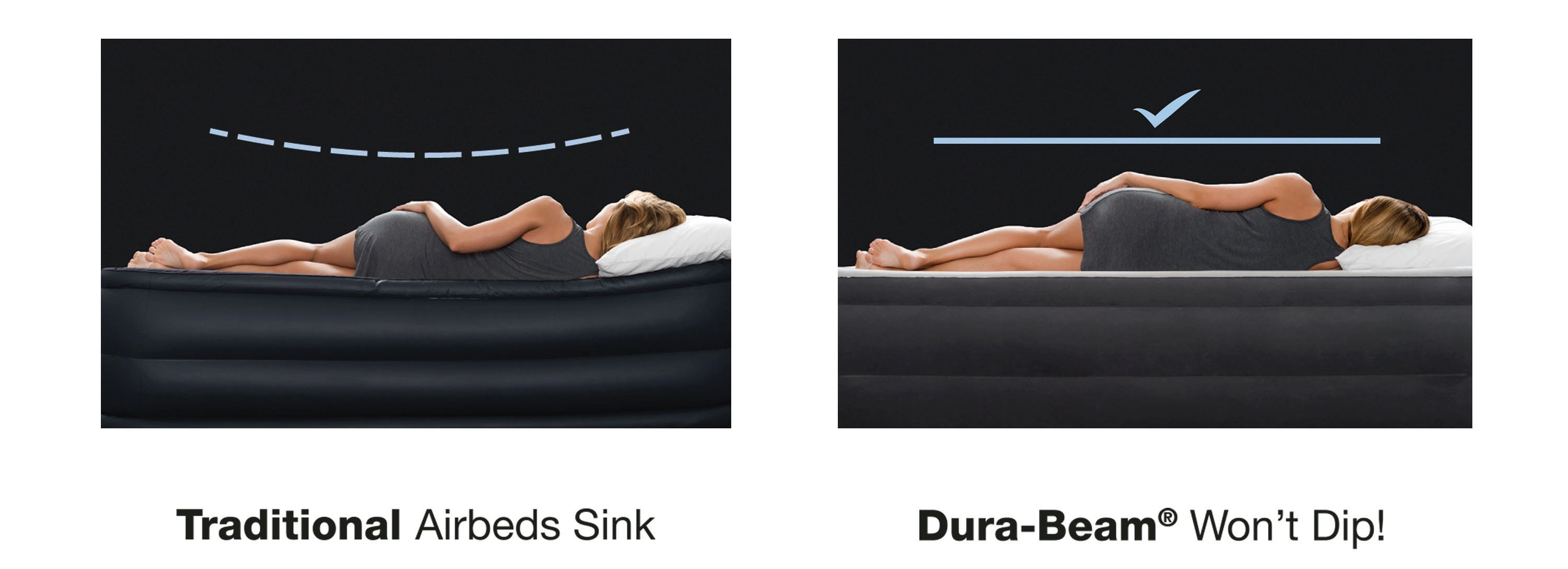 Vgrajena električna črpalka omogoča hitro in breznaporno napihovanje ter izpihovanje. Prijetna velurjeva površina je nežna do kože in izboljša oprijem rjuhe. Integrirano napihljivo vzglavje nudi oporo pri branju in počitku. Postelja je priložena z transportno torbo in popravilnim obližem.