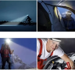 Univerzalna naglavna svetilka z svetilnostjo do 350 lm zagotavlja zanesljivo svetlobo pri kampiranju, teku, popravilih in nočnih povratkih. Sprednji COB LED trak nudi širok poplavni snop, medtem ko XPE LED ponuja osredotočen doseg do 50 m. 6 načinov enostavno prilagodite situaciji.