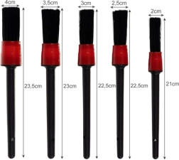 Komplet vsebuje pet čopičev različnih velikosti, ki omogočajo dostop do tudi najmanjših prostorov v vašem vozilu.
