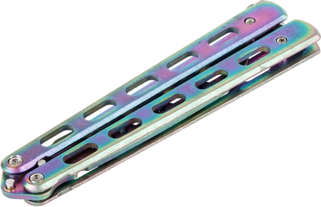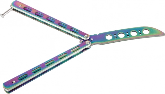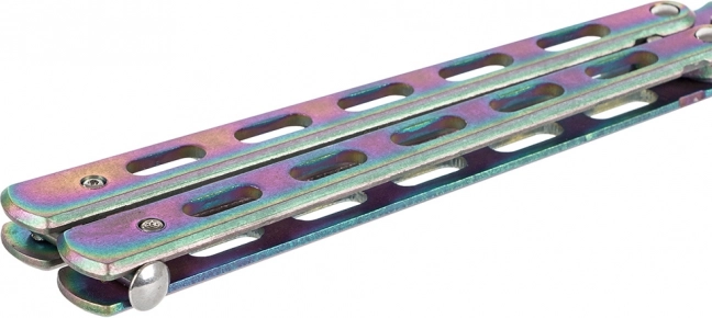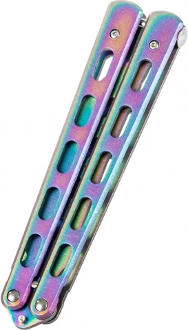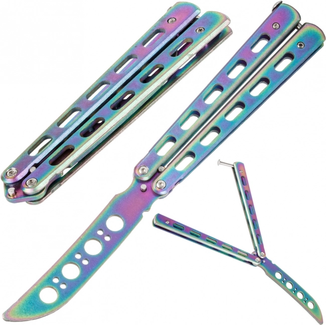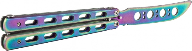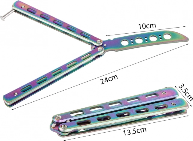 Odkrijte svet trikov z varnostnim trening metuljček nožem. Ta nož ima topo rezilo za maksimalno varnost pri vadbi. Njegov kompakten dizajn omogoča preprosto prenašanje, prilega se v žep in je opremljen z zaporo proti neželenemu odpiranju.