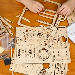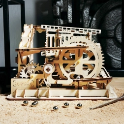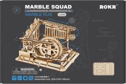 ROBOTIME ROKR Marble Run Squad je podrobno 3D leseno puzzle, ki po sestavi oživi z pametno mehaniko. Zavrtite ročico in opazujte, kako jeklene kroglice švigajo po ravnih in nagnjenih stezah, prečkajo padajoča vrata in se dvigajo z dvigalom. Model izstopa po preciznem laserskem izrezu, stabilni konstrukciji in je izdelan iz varnih, nestrupenih materialov.