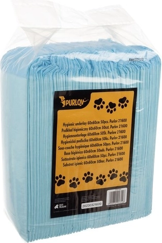 Enkratne vpojljive podloge PurLuv so idealne za vzgojo domačih ljubljenčkov. Ta pakiranja vsebujejo 50 vpojnih podlog in 30 vrečk za odpadke. Podloge so univerzalne in nepropustne, ščitijo notranjost vašega doma pred nezgodami.