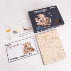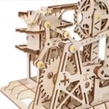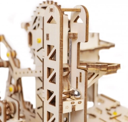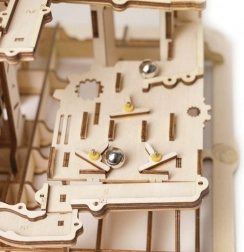 Model vsebuje stolpni razdelilnik, spiralne klance, žerjavno in kolesno dvigalo, kratki tobogan in pametno nameščena stikala, ki spreminjajo pot kroglic. Stopnja zahtevnosti je ocenjena s 4/5; sestavljanje traja približno 6–7 ur. Po končanem delu preprosto zavrtite ročico in se prepustite dinamičnemu prikazu, ki nazorno predstavlja principe STEM.