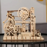Odkrijte čar mehanike z leseno frnikolsko stezo ROKR Climber – natančen 3D puzzle, ki povezuje lepoto inženirstva, STEM učenje in zabavo za vso družino. Po sestavi le zavrtite ročico in opazujte, kako jeklene kroglice švigajo po spiralnih klancih, skozi stolpni razdelilnik in dvigala v zapletenem sistemu zobnikov.