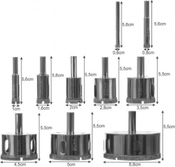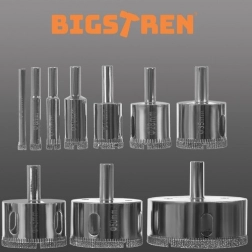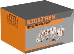 Komplet 10 diamantnih izrezovalnih kron BIGSTREN pokriva najpogostejše vodovodne in elektroinštalacijske premere: 6, 8, 10, 16, 20, 28, 35, 45, 50 in 68 mm. Zaradi diamantnega premaza krone dosegajo odlično življenjsko dobo in maksimalno natančnost brez odlamljanja robov ploščic. Vrtate lahko na mokro za daljšo vzdržljivost in hitrejši odvod toplote ali na suho za krajše odseke.