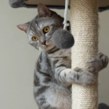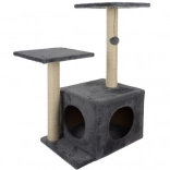 Z dodelanim dizajnom s sisalovimi stebri in plišastimi površinami je ta praskalnik idealen za praskanje, plezanje in počitek. Glavna prednost je udobno ležišče, ki mačkam omogoča sproščen počitek in odličen razgled. Dodana igrača spodbuja lov in igro.