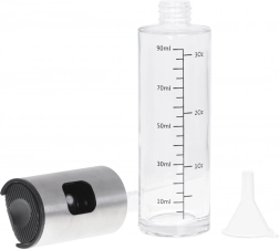 Izdelana iz trpežnih materialov, steklenica združuje varno steklo za hrano s plastičnim in nerjavečim razpršilcem. Zahvaljujoč praktični lestvici ob strani boste vedno imeli pregled nad količino vsebine.