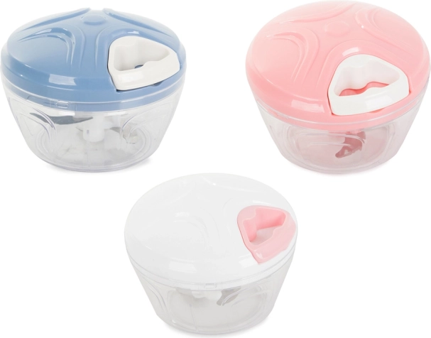 Ta inovativni ročni rezalnik je idealna rešitev za vsako kuhinjo. Samo povlecite za vrvico in njegove tri nerjaveče nože hitro in natančno nasekajo zelenjavo, sadje, oreščke in zelišča.