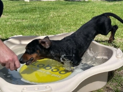 Premišljena zasnova z varnimi, zaobljenimi robovi preprečuje glodanje, medtem ko praktični drenažni kanalčki preprečujejo prelivanje. Bazen je zložljiv za prihranek prostora, z ročajem pa ga udobno prenesete kamor koli – na dvorišče, teraso ali na potovanja z živalmi.
