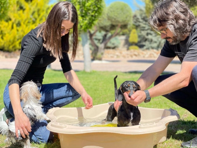 Ta prostoren bazen za hišne ljubljenčke je idealen za higiensko kopanje in poletno hlajenje na vrtu. Lahka, a trdna konstrukcija iz materiala, obogatenega z mandljevimi lupinami, zagotavlja daljšo življenjsko dobo in manjši okoljski odtis. Dekor, odporen na vodo in UV-sevanje, je uporabljen z IML tehnologijo, zato se ne lušči in ne bledi.
