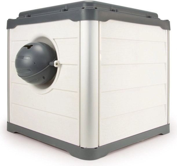 LOBOO SMARTKAVE CUBE je praktična, vzdržljiva in estetska hiška za pse in mačke z ravno streho, ki nudi varno mesto za spanje in počitek ter hkrati ščiti pred vremenskimi vplivi. Njena konstrukcija združuje eloksiran aluminij in plastiko, ojačano z naravnimi vlakni iz mandljevih lupin, kar zagotavlja dolgo življenjsko dobo in prijaznost do okolja.