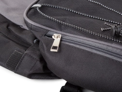 - Prostorni predali: Vsebuje 1 zgornji in 2 velika stranska predala, vsi z zadrgo. Vsaka stran ima še dva manjša žepa.