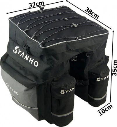 Velika večnamenska kolesarska torba, namenjena za pritrditev na nosilec kolesa, je idealna izbira za dolge kolesarske ture. Praktična in prostorna, ponuja dovolj prostora za oblačila, drobnarije in živila. Poleg tega jo dopolnjuje dežna prevleka, ki ščiti vsebino pred dežjem.