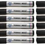 Ta črni permanentni označevalnik je zasnovan za dolgo življenjsko dobo in zanesljivost. Zahvaljujoč vodoodpornemu in na bledenje odpornemu črnilu bo vaše označevanje ostalo berljivo in intenzivno tudi po daljšem času. Okrogla konica debeline 2 mm zagotavlja gladek in natančen poteg.