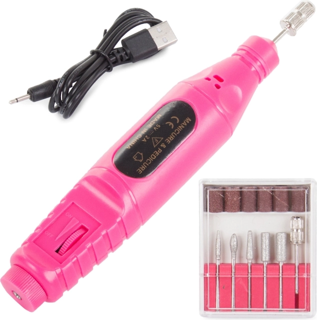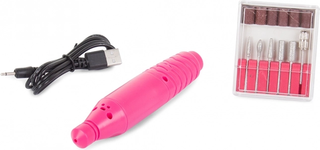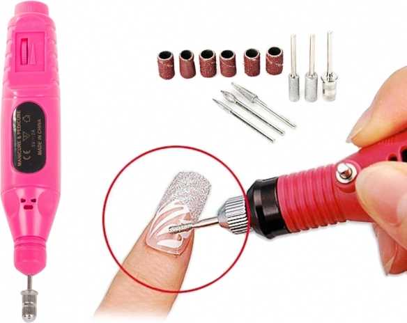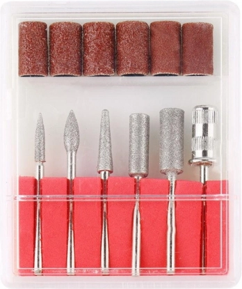 - Vsebuje 6 zamenljivih nastavkov in 6 brusnih kolutov za različne funkcije nege nohtov.