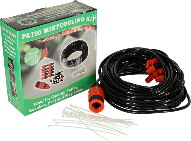 V poletnih mesecih je bivanje zunaj lahko vroče. Vrtni zalivalni sistem z nežno meglico vam pomaga ustvariti prijetno okolje, da se lahko sprostite v senci vašega vrta. Ta sistem vodne pršilke ne le ohladi zrak do 10°C, ampak tudi odganja insekte, kar zagotavlja udobno sprostitev.