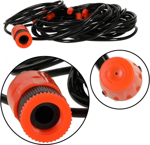 Preprosta priključitev na vrtno cev ali pipo. Prilagodljivo cev lahko namestite na tla, ob ograjo, v rastlinjak ali pod pergolo.