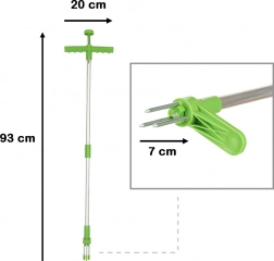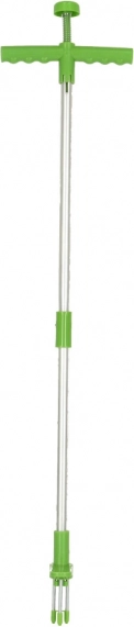 Mehanizem s tremi konicami zagrabi plevel z več strani, ga trdno stisne in omogoči izvlek skupaj s koreninami. Dovolj je, da konice usmerite v sredino rastline, pritisnete, rahlo zasukate in izvlečete. Praktičen gumb v zgornjem delu olajša snemanje izpuljenega plevela z orodja.