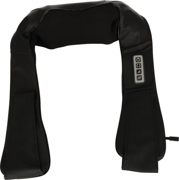 Upravljalna plošča na samem ovratniku omogoča preklop smeri vrtenja, nastavitev intenzivnosti in samostojno vklop/izklop toplote. Trpežna izvedba iz eko usnja in zračna kontaktna cona se enostavno čistita in sta prijetna za nošenje. V paketu najdete tako omrežni napajalnik kot tudi avtomobilski adapter za udobno uporabo na poti.