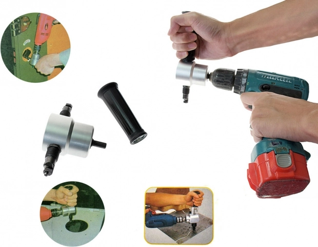 Izkoristite svoj čas maksimalno s tem inovativnim nastavkom za rezanje pločevine. Enostavno ga pritrdite na vse vrste vrtalnih strojev in pridobite orodje, ki lahko reže pod kotom 360 stopinj, ne da bi poškodovalo material.