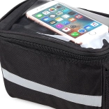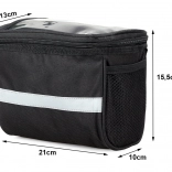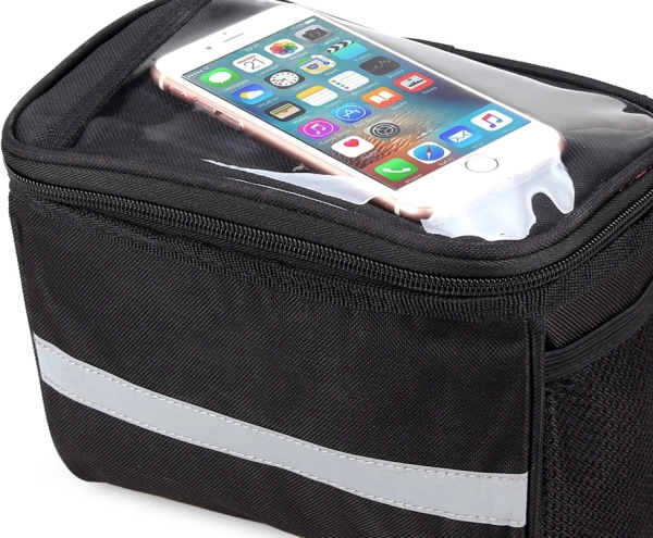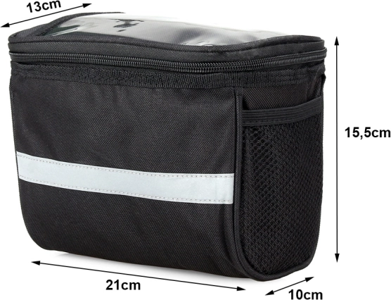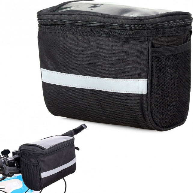 Torbica ima en glavni predal z nekoliko večjo zadrgo, poleg tega pa ima na straneh dva majhna žepa iz mreže. Na zgornji strani je žep za mobilni telefon ali majhen tablični računalnik. Torba je podložena z odsevnimi trakovi za večjo varnost na cesti. Uporablja se udobno in omogoča prosto uporabo vseh funkcij telefona med vožnjo s kolesom. Vanjo lahko spravimo naprave z diagonalo do 8" dizajn.