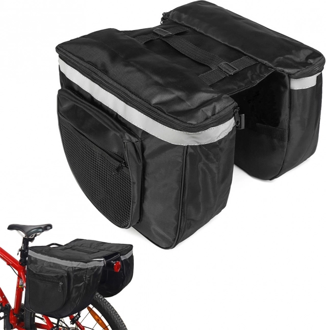 Večnamenska torba za kolo idealna za daljša kolesarska potovanja. Omogoča enostavno pakiranje oblačil, malenkosti ali hrane z dvema velikima oddelkoma in manjšimi žepi na zadrgo.