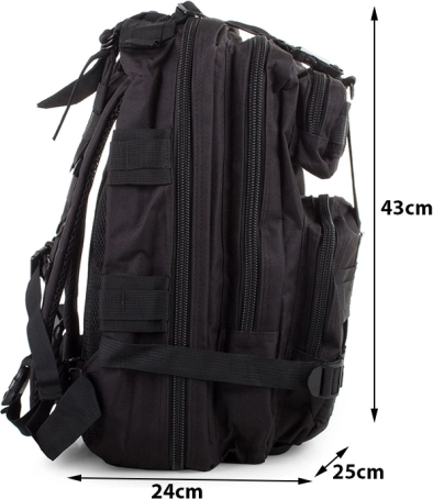 Vojaški taktični nahrbtnik s prostornino 30 litrov odlično združuje funkcionalnost in vzdržljivost. Idealen je za alpiniste, vojaške navdušence in ljubitelje ekstremnih športov, pa tudi za aktivno preživljanje prostega časa.