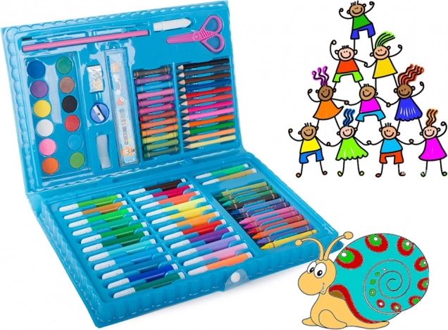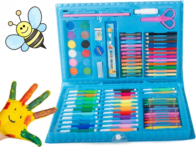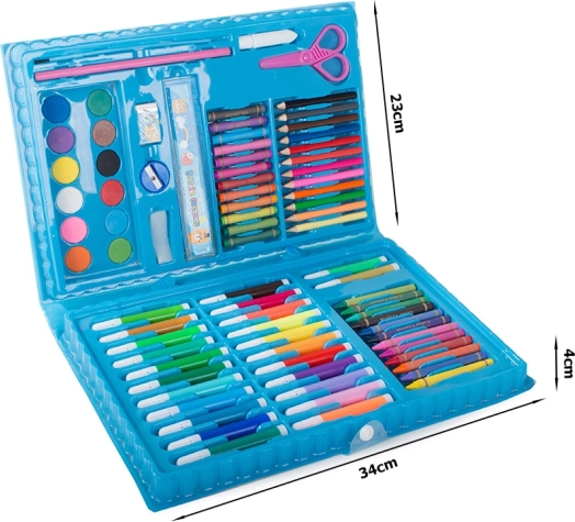 Ta vsestranski slikarski komplet v trpežnem plastičnem kovčku razvija kreativnost in fino motoriko. Otroci lahko preprosto kombinirajo barvice, flomastre, oljne pastele in akvarelne barve ter ustvarjajo izvirna likovna dela. Kompaktne mere in praktičen ročaj olajšajo prenašanje.