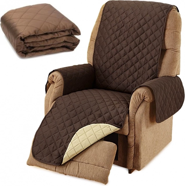 Zahvaljujoč obojestranski zasnovi z rjavo in kremno barvo lahko enostavno menjate videz vašega prostora. Pregrinjalo je pralno v pralnem stroju, kar olajša njegovo vzdrževanje in dolgotrajno uporabo. Njegove dimenzije 170 x 175 cm pokrivajo večino standardnih naslanjačev.