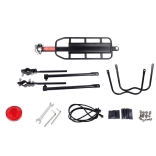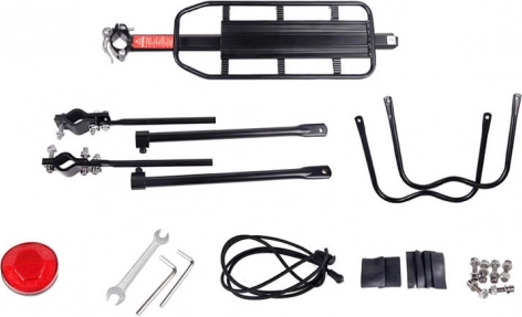 Montaža na sedežno oporo je hitra in preprosta – brez potrebe po posebnem orodju. Nosilec je univerzalen za sedežne opore s premerom 27,2–31,8 mm, stabilna platforma pa zanesljivo drži tovor na mestu. Priložen je zadnji odsevnik za boljšo vidnost, po želji pa lahko pritrdite tudi lastno luč.