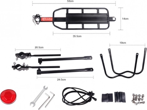 Univerzalni zadnji nosilec za kolo iz kakovostnega aluminija je odlična izbira za prevoz torb, nakupov in službenih stvari. Aluminijasta konstrukcija je čvrsta, lahka in odporna proti koroziji, zato ne obremenjuje kolesa in brez težav prenese vsakodnevno uporabo.