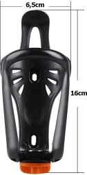 Univerzalni nosilec za bidon iz odporne plastike se prilagodi večini kolesarskih steklenic, vključno z volumnom do 1,5 l. Nizka teža ne obremenjuje kolesa, medtem ko oblikovano vodenje ohranja steklenico stabilno tudi pri vožnji po neravninah.