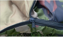 Zadrga se odpira do spodnjega dela za enostavno zračenje in razgrnitev v odejo. Ježek preprečuje nenamerno odpenjanje.