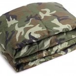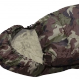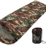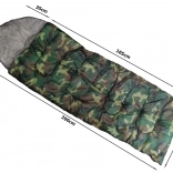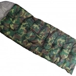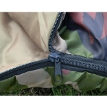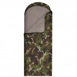 Enojna spalna vreča v kamuflažnem dizajnu za kampiranje in pohodništvo. Ima zadrgo po celotni dolžini, integrirano kapuco z vrvico za zatezanje ter lahko in trpežno konstrukcijo s poliestrsko izolacijo, ki učinkovito zadržuje toploto. Lahko jo popolnoma odprete in uporabite kot odejo.